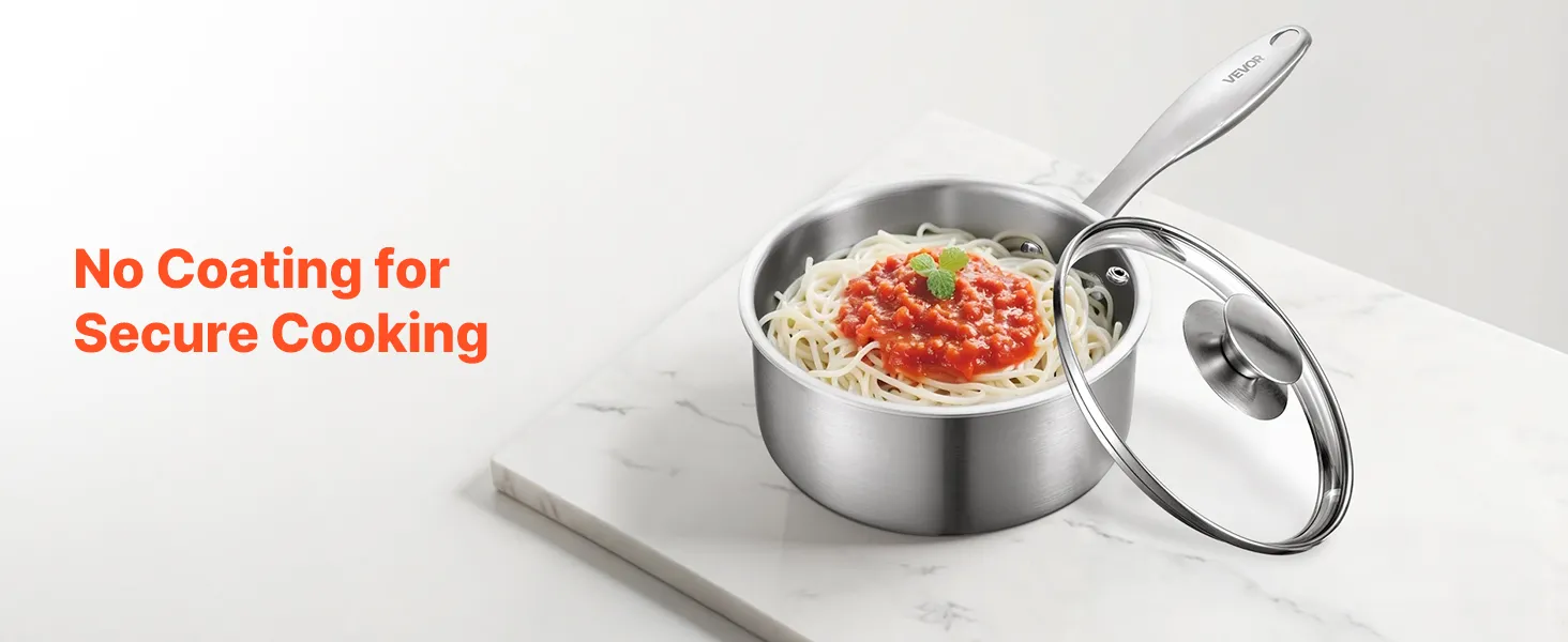 Dreilagiger Boden: Hergestellt aus hochwertigem, Edelstahl 304, Aluminiumkern und magnetischem Boden aus SUS430 für schnelle und gleichmäßige Wärmeverteilung. Der unbeschichtete Topfinnenraum verhindert das Abblättern der Farbe – sicher für den täglichen Gebrauch