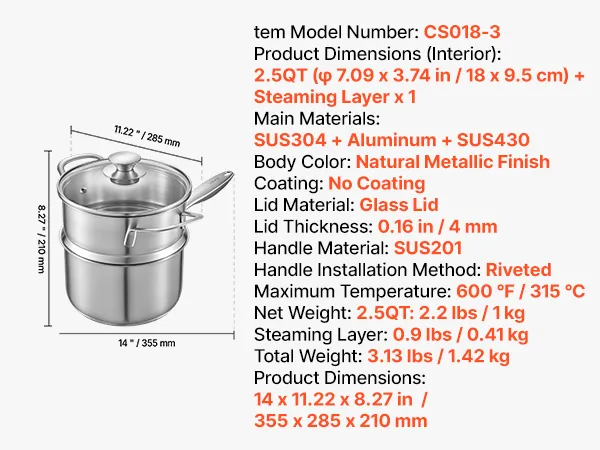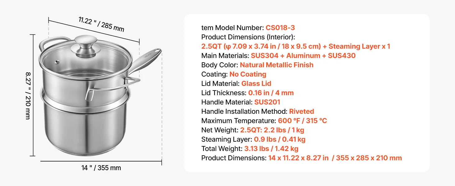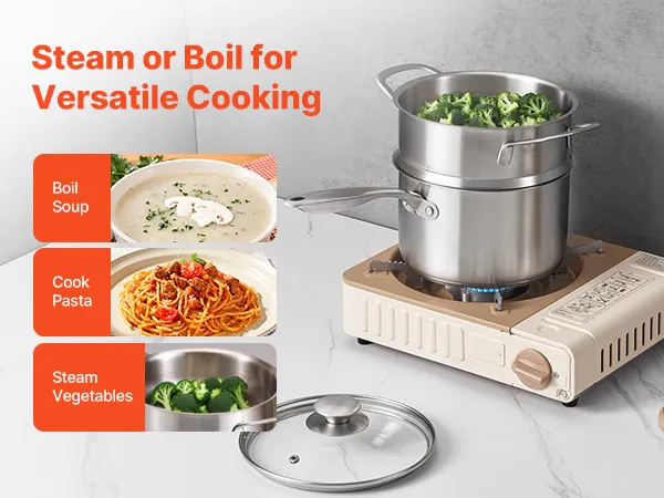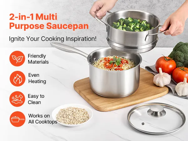 2 in 1 Kochtopf mit Dampfgarer: Dieser 2,5 QT (2,37 L) Kochtopf verfügt über einen Dampfgarer-Einsatz und eignet sich daher nicht nur zum Kochen von Soßen, Suppen und Milch, sondern auch zum Dämpfen von Meeresfrüchten und Gemüse. Eine vielseitige Lösung für alltägliche Mahlzeiten