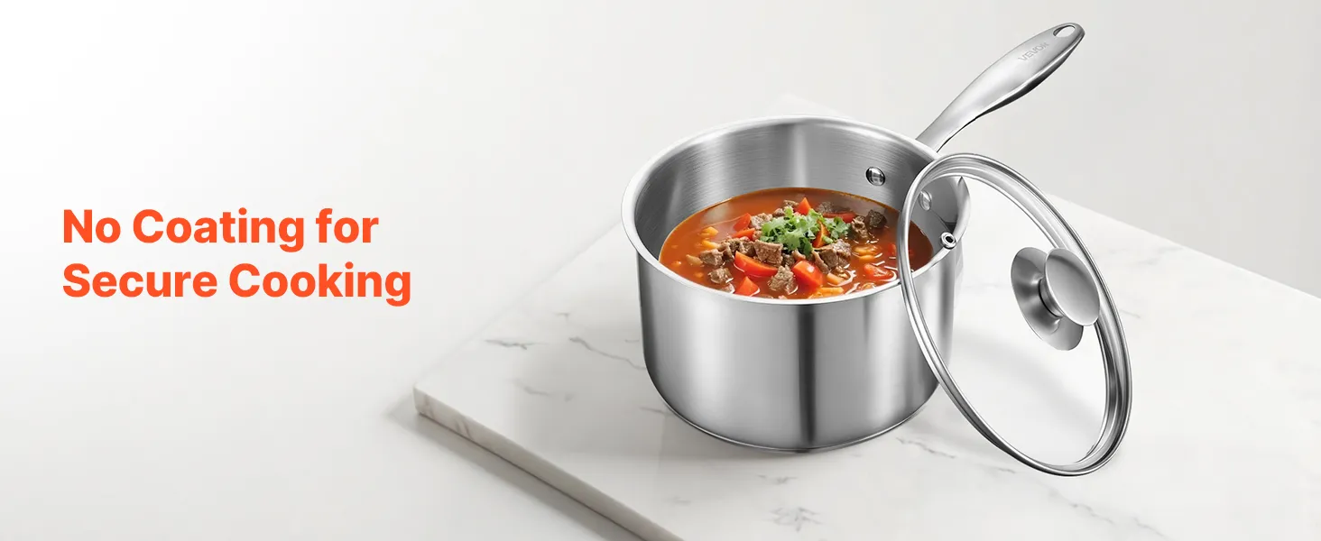 Hergestellt aus hochwertigem Edelstahl 304 ohne Beschichtung. Sicher und zuverlässig – keine Gefahr des Abblätterns oder Absplitterns, wodurch unser Kochtopf mit Deckel ideal für Hobbyköche ist.