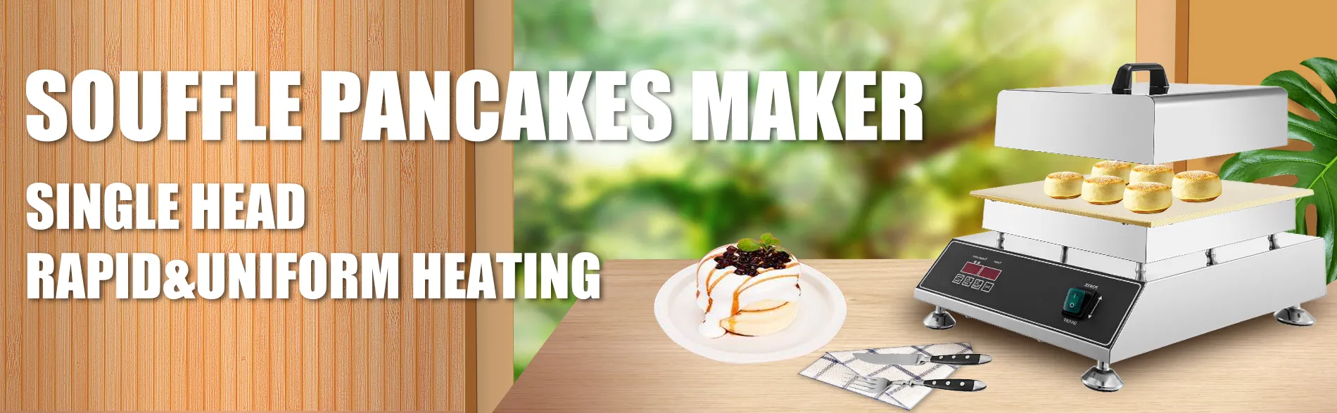 Verbesserte Souffle Pancake Backmaschine. Unterstützen Sie das elektronische Bedienfeld, mit dem die Temperatur genauer gesteuert werden kann, als die Maschine, die nur die manuelle Rotationssteuerung unterstützt.