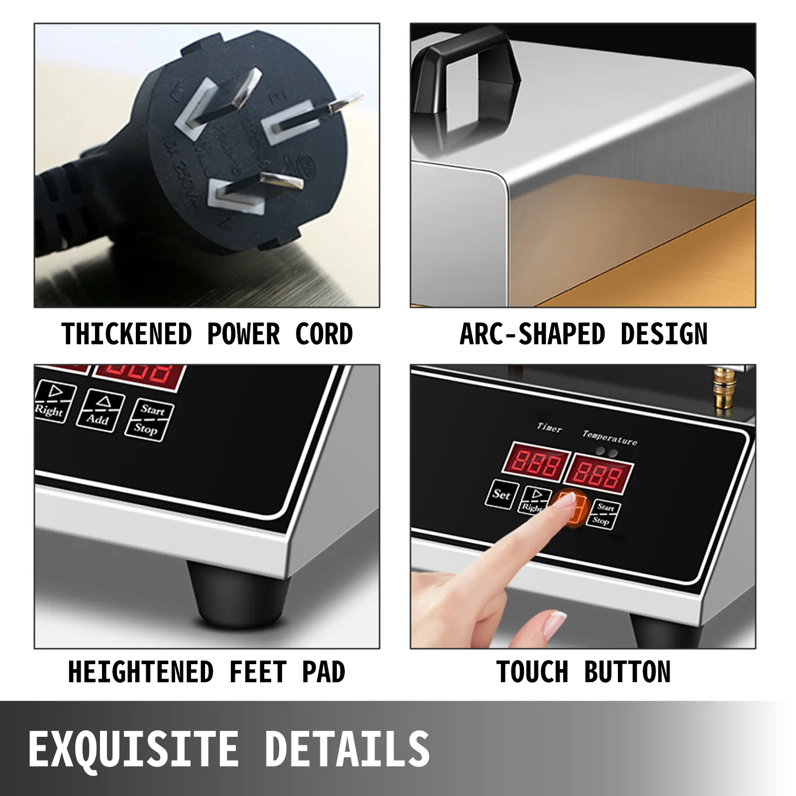 Premium Souffle Pancakes Maker mit Spiegel Edelstahl Material, langlebig und rostfrei. Vollkupfer-Heizplatte, antihaftbeschichtet und gut leitend. Präzise Temperaturregelung, die Temperatur kann von 30-250 Grad eingestellt werden, einfach zu bedienen. Geeignet für den privaten und gewerblichen Gebrauch. Weit verbreitet in Restaurants, Bäckereien, Dessert Läden usw.