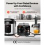 1500-VA-Spannungswandler: Mit vier AC-Ausgängen – zwei US-Standard-Ausgängen und zwei EU-Ausgängen. Für optimale Ergebnisse wählen Sie einen Spannungswandler mit einer Leistung von mindestens 40 % mehr als die Gesamtleistung Ihres Geräts.