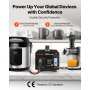 500-VA-Spannungswandler: Mit zwei AC-Ausgängen – einem US-Standardausgang und einem EU-Ausgang. Für optimale Ergebnisse wählen Sie einen Spannungswandler mit einer Leistung von mindestens 40 % mehr als die Gesamtleistung Ihres Geräts.