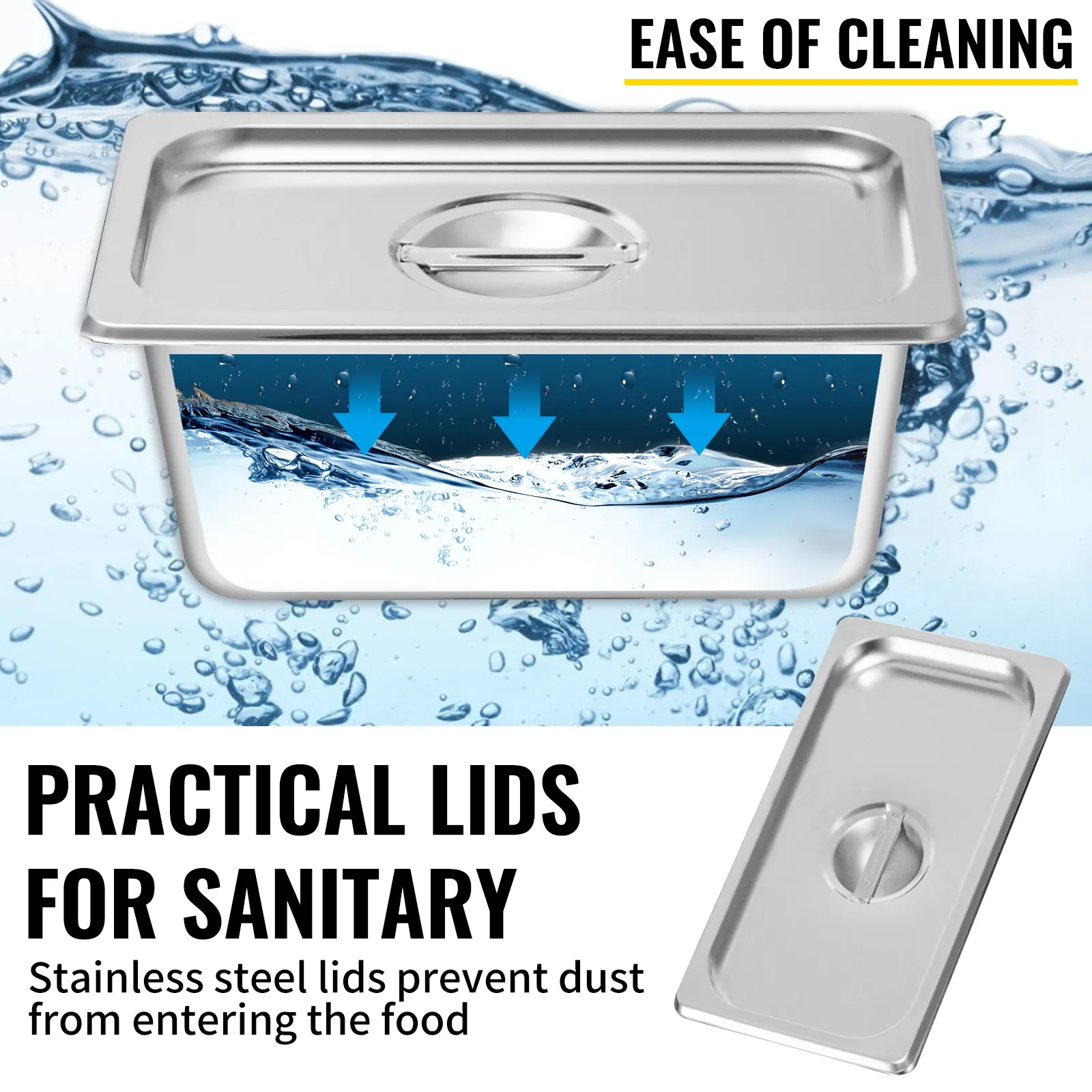 Der Buffet-Speisewärmer wird mit zwei 1/3 Pfannen und zwei 1/6 Pfannen für große Kapazität geliefert. Es ist mit nassen und trockenen Anwendungen kompatibel und hält Ihre köstlichen Speisen heiß und servierfertig.