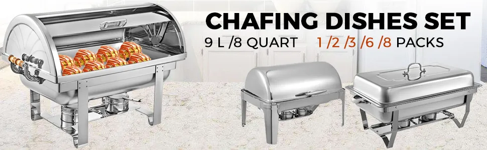 3 Stück Speisewärmer mit Roll-Top Deckel Chafing Dish Set