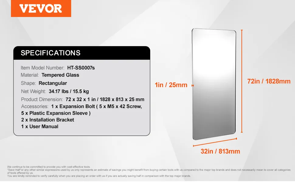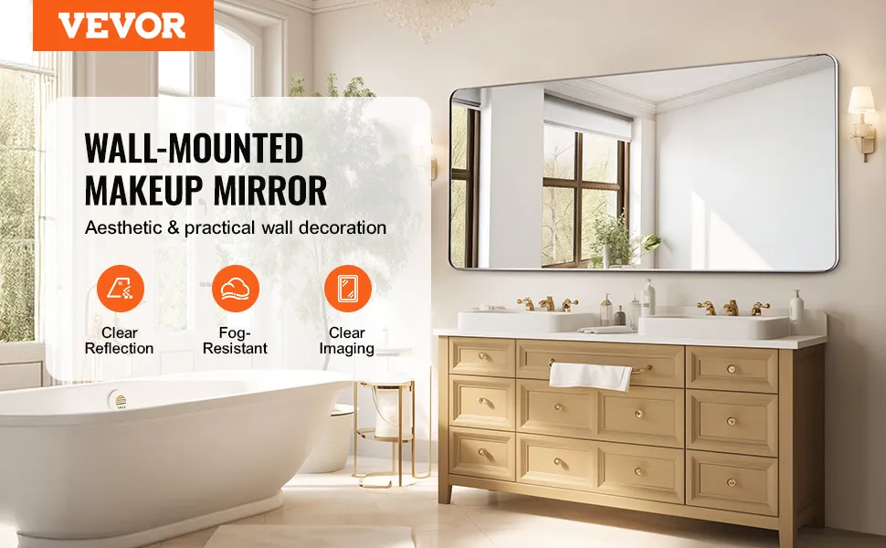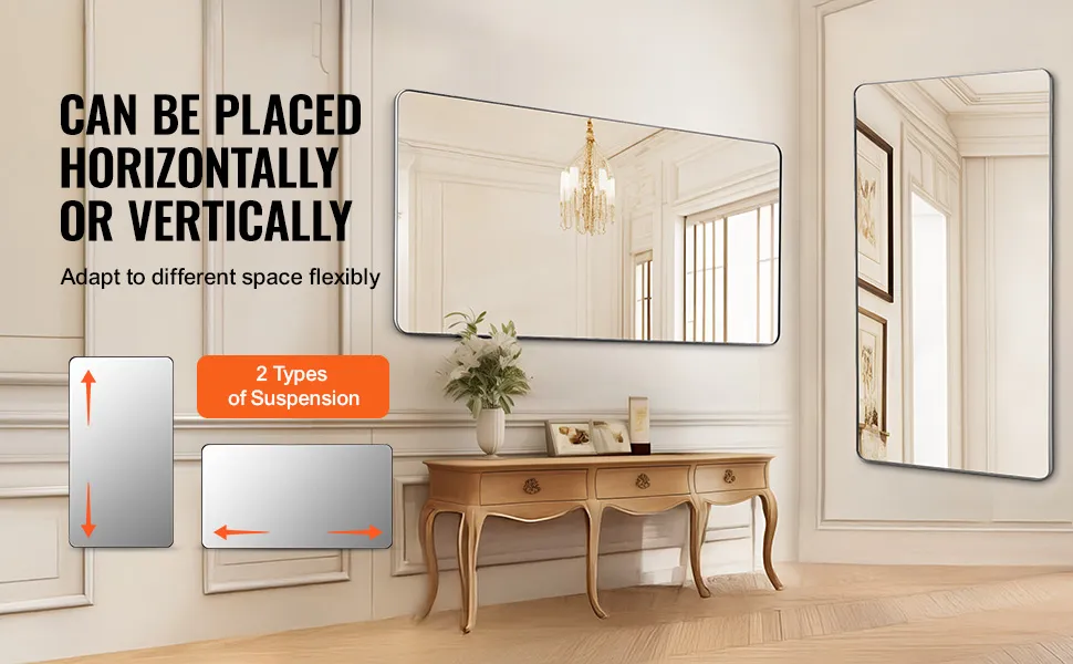 VEVOR Wandspiegel Schminkspiegel Badezimmerspiegel 1828 x 813 x 25mm rechteckiger Spiegel, silberner Rahmen aus Aluminiumlegierung, mit Z-förmiger Halterung für Badezimmer Schlafzimmer Wohnzimmer