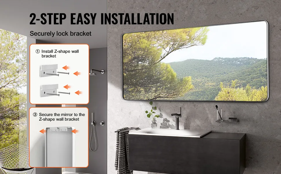 Die Z-förmige Wandhalterung dieses an der Wand befestigten Schminkspiegels vereinfacht die Installation und minimiert die Notwendigkeit, Löcher zu bohren oder die Wand zu beschädigen. In nur zwei einfachen Schritten ist der Spiegel sicher befestigt.