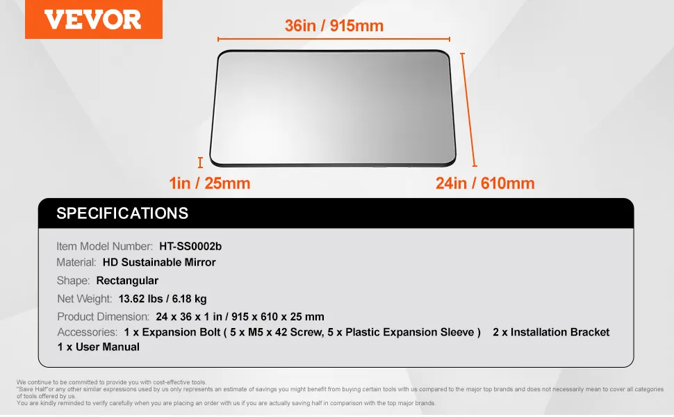 Langlebiger & robuster Spiegel mit Kratzfestigkeit: Dieser 0,15 Zoll (3,81 mm) große hochauflösende Spiegel ist verschleiß- und kratzfest und behält seine saubere Oberfläche. Die bruchfeste Folie erhöht die Stoßfestigkeit und sorgt für langanhaltende Klarheit in jedem Raum.