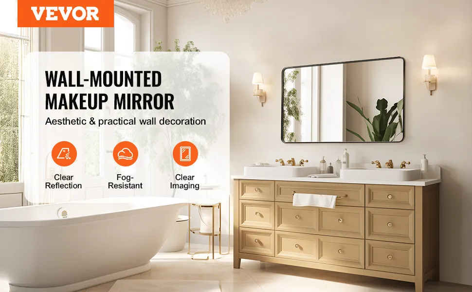VEVOR Wandspiegel Schminkspiegel Badezimmerspiegel 915 x 610 x 25 mm rechteckiger Spiegel, schwarzer Rahmen aus Aluminiumlegierung mit Z-förmiger Halterung für Badezimmer Schlafzimmer Wohnzimmer