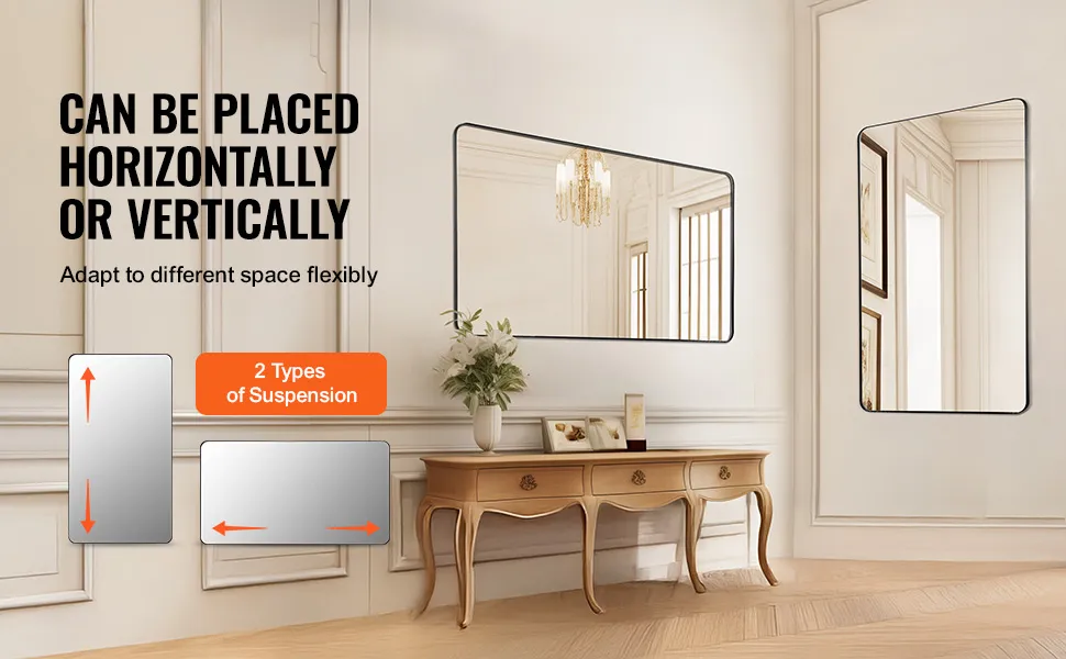 Flexible Installation für jeden Raum: Dieser Spiegel kann problemlos in Badezimmern, Fluren, Wohnzimmern oder Schlafzimmern angebracht werden und fügt sich nahtlos in verschiedene Einrichtungsstile ein. Durch sein anpassungsfähiges Design passt er bequem in verschiedene Layouts.