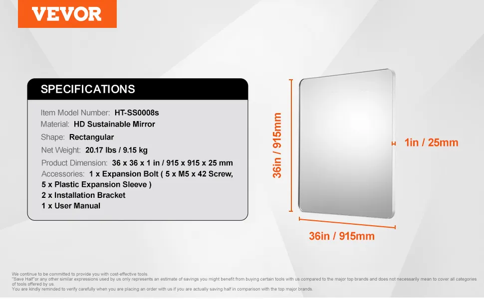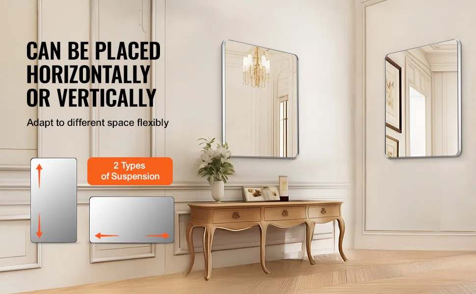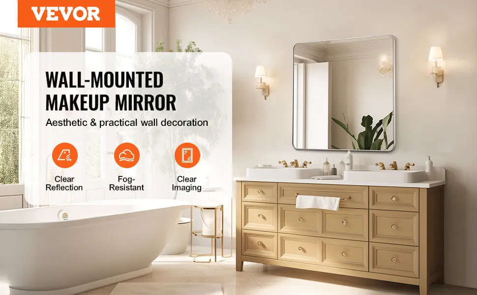 VEVOR Wandspiegel Schminkspiegel Badezimmerspiegel 915 x 915 x 25 mm rechteckiger Spiegel, silberner Rahmen aus Aluminiumlegierung, mit Z-förmiger Halterung für Badezimmer Schlafzimmer Wohnzimmer