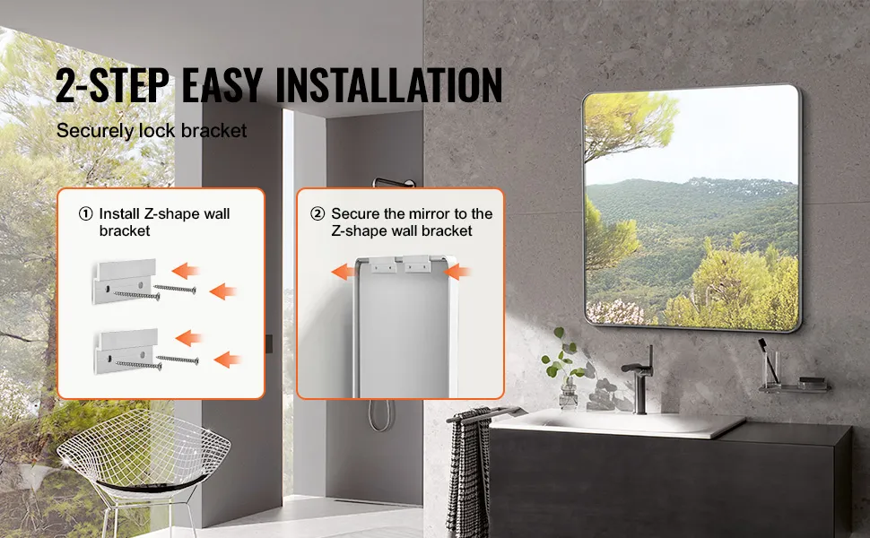 Die Z-förmige Wandhalterung dieses an der Wand befestigten Schminkspiegels vereinfacht die Installation und minimiert die Notwendigkeit, Löcher zu bohren oder die Wand zu beschädigen. In nur zwei einfachen Schritten ist der Spiegel sicher befestigt.