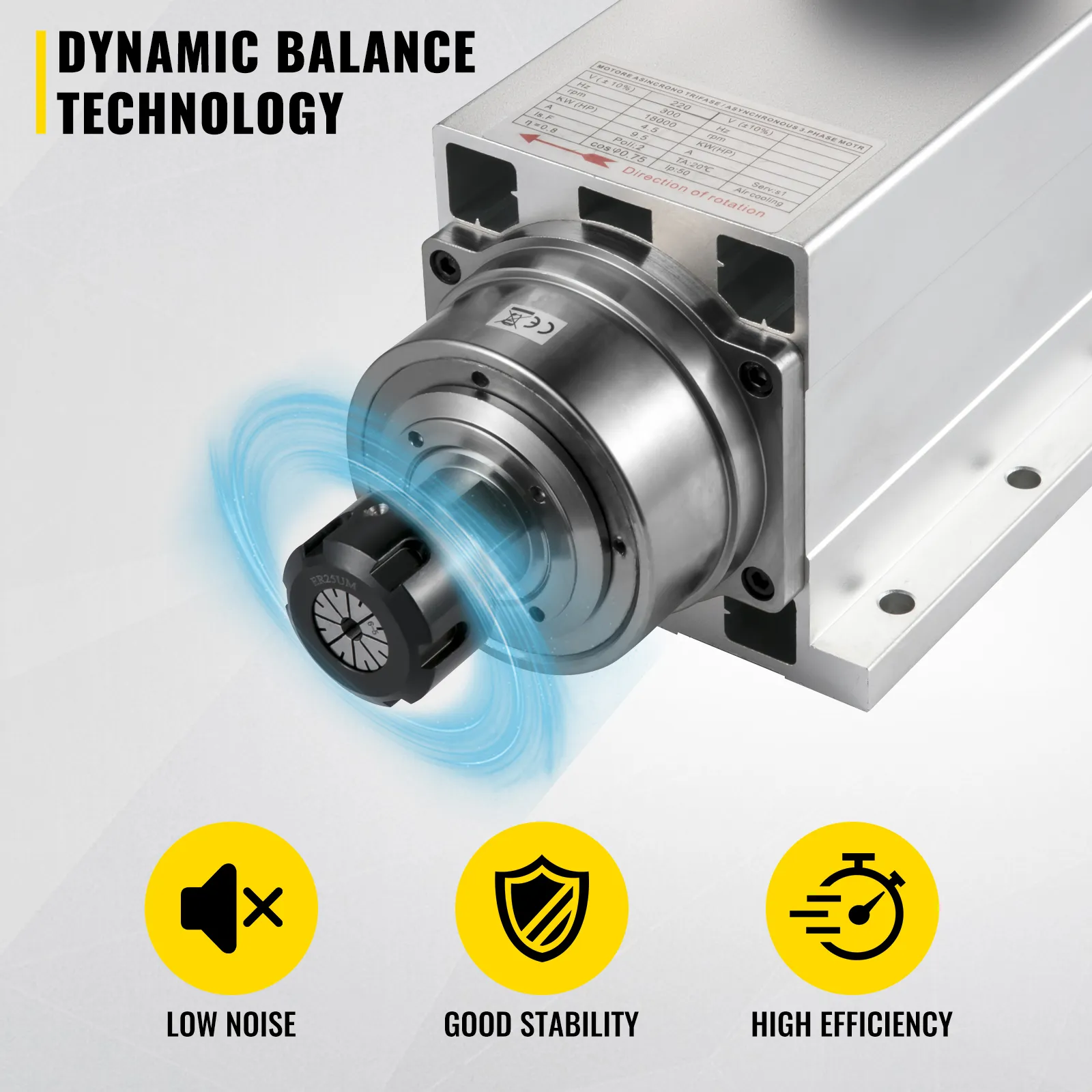 Der CNC-Spindelmotor ist vorne und hinten mit einem Kupferrotor und zwei Paar Keramikkugellagern ausgestattet, was die Haltbarkeit und Korrosionsbeständigkeit verbessert.