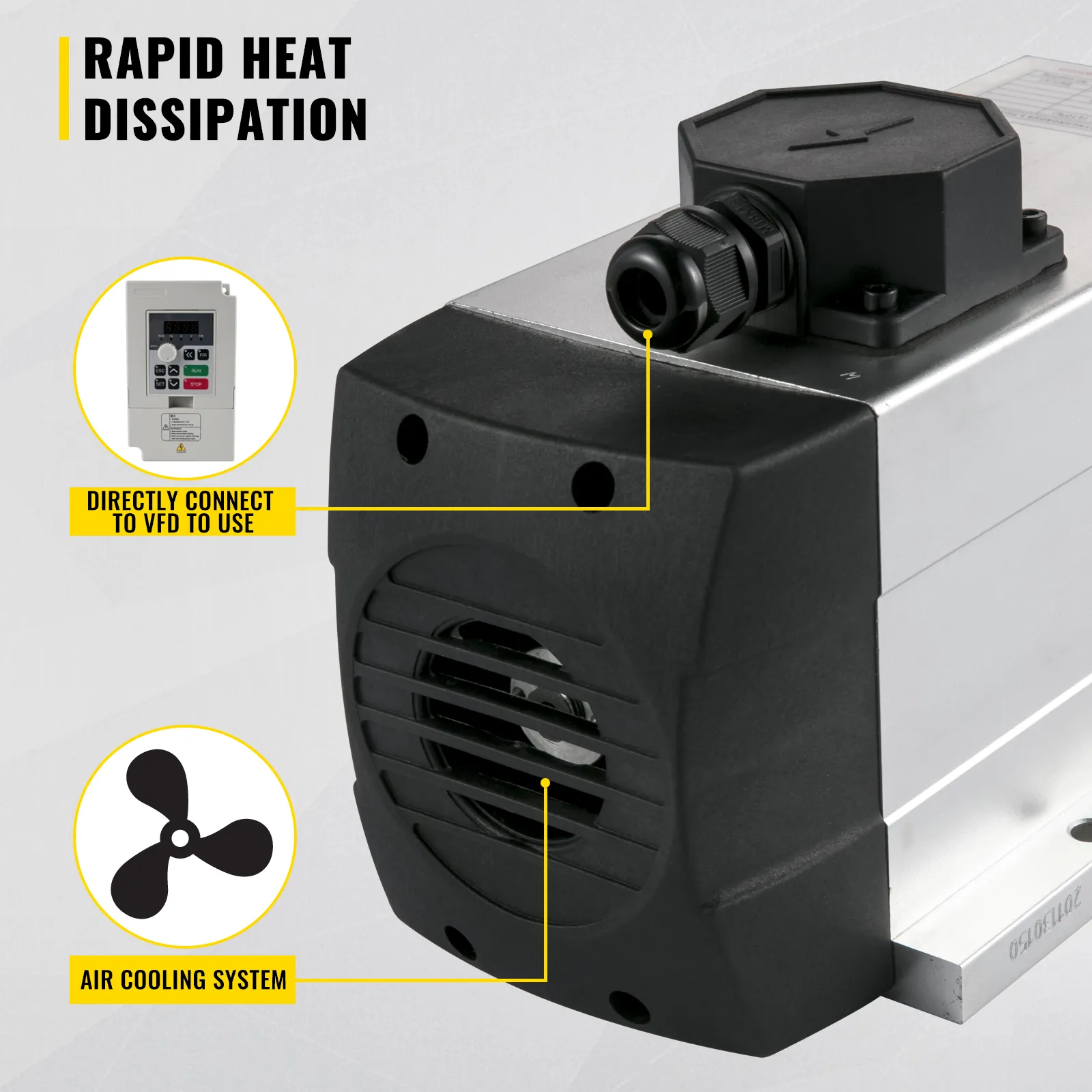 Der luftgekühlte Spindelmotor nutzt das Luftkühlsystem, um die Wärme der Maschine zu kühlen. Sie können direkt an den VFD anschließen, um ohne Wasserleitungen und Pumpen zu arbeiten.