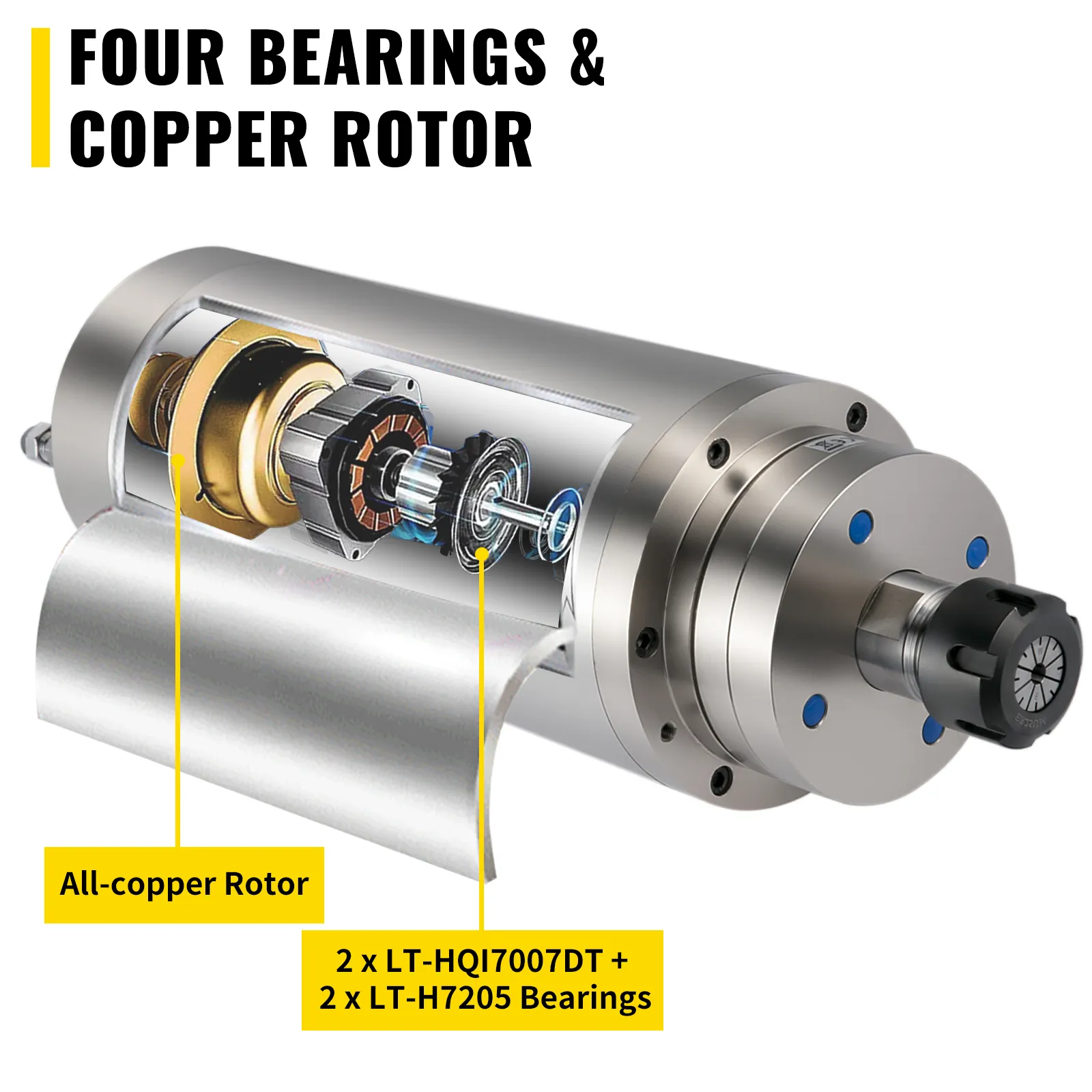 Im Gegensatz zu anderen Frässpindelmotoren verwenden unsere innovative und fortschrittliche dynamische Auswuchttechnologie. Die offensichtlichen Vorteile sind hohes Drehmoment, geringes Geräusch, geringe Reibung und hoher Wirkungsgrad.