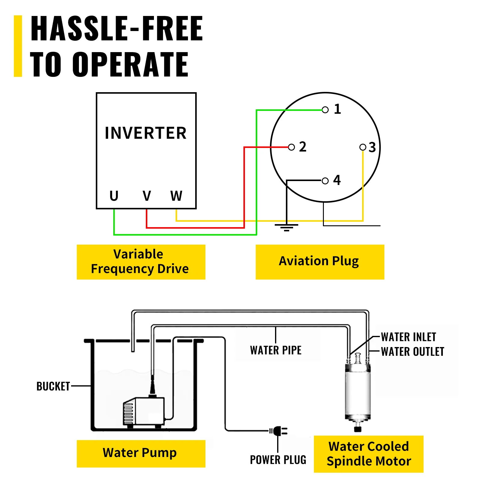 Verbinden Sie einfach den Spindelmotor mit dem Umrichter und der Wasserpumpe, und Sie können die Wasserzirkulation nutzen, um die Wärme des Werkzeugs zu kühlen.