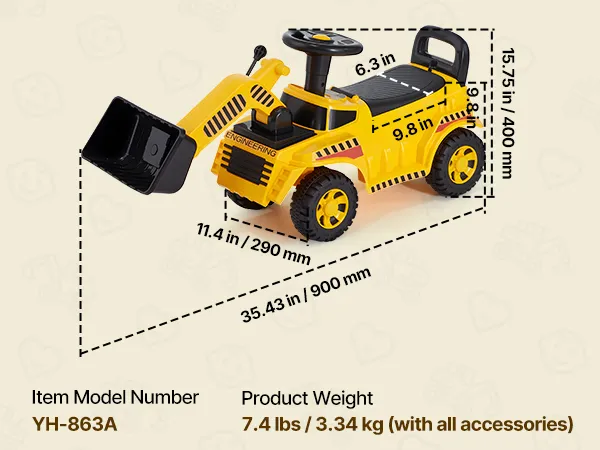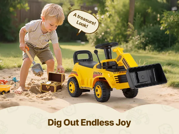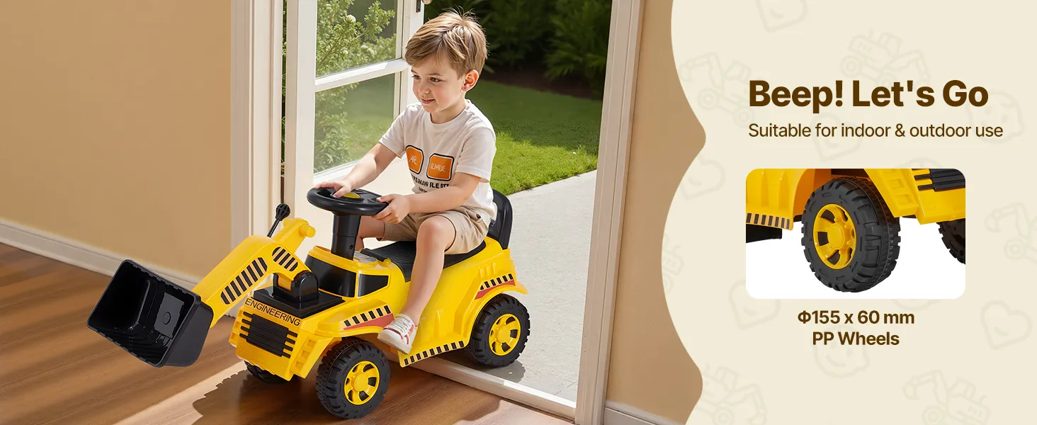 Ob drinnen oder im Park – dieser Kinderbagger verwandelt jeden Raum in eine Spielzone! Die rutschfesten Räder sorgen dafür, dass Ihr Kind beim Herumgleiten sicher sitzt.