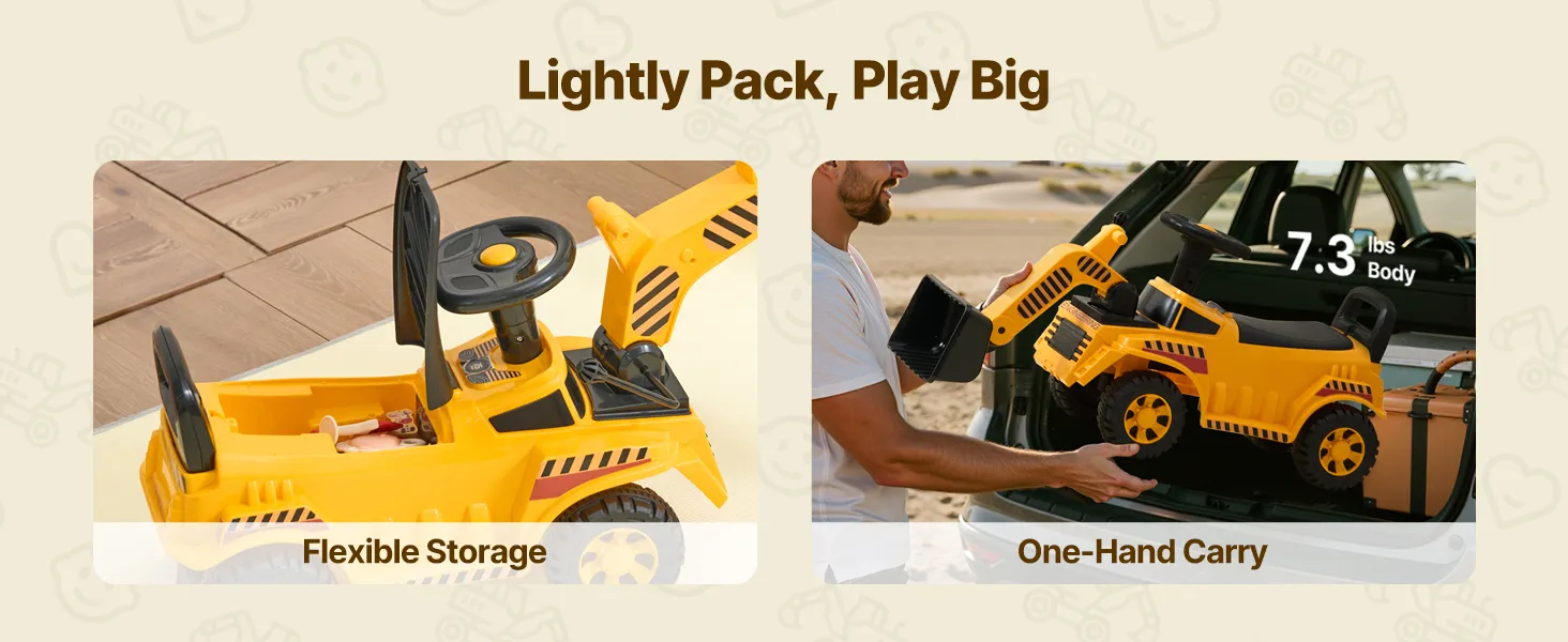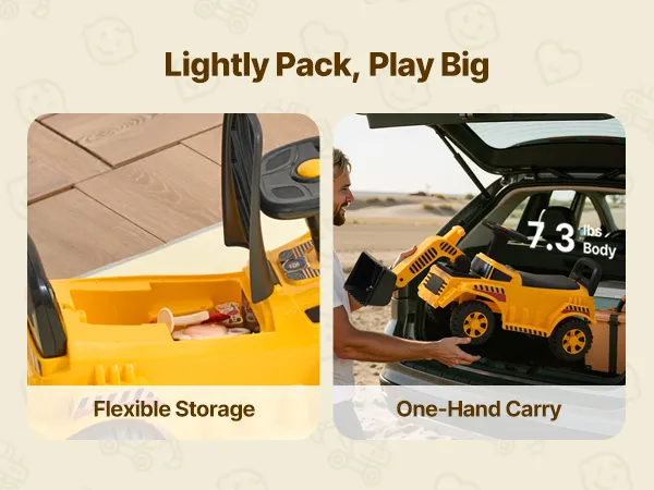 Leicht und tragbar: Mit einem Gewicht von nur 3,3 kg ist unser Kinderbagger für Eltern leicht zu tragen, kompakt genug für den Kofferraum eines Autos und ideal für Spaß im Freien