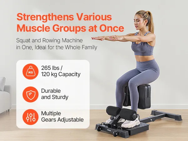 Trainieren Sie selbstbewusst und ohne Belastung für Knie und Rücken! Diese für Fitnessbegeisterte konzipierte Kniebeugemaschine mit zwei Knien ist eine effektive Methode, um die Kraft im Unterkörper zu stärken und gleichzeitig Gelenkschmerzen vorzubeugen. Multifunktional in einem: Sie ist Ihr persönlicher Kniebeugentrainer, Rehabilitationspartner und eine clevere Erweiterung Ihres Heim-Fitnessstudios.