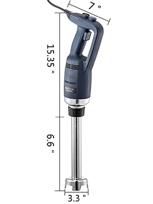 Dieser Stabmixer ist mit einem Rührstab aus rostfreiem Stahl in Lebensmittelqualität ausgestattet, der über einfach zu bedienende Sicherheits- und Verriegelungsknöpfe sowie einen Geschwindigkeitskontrollknopf verfügt.
