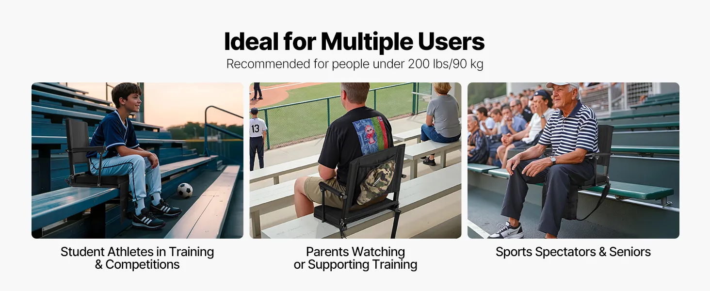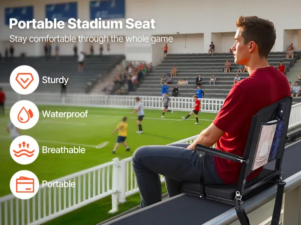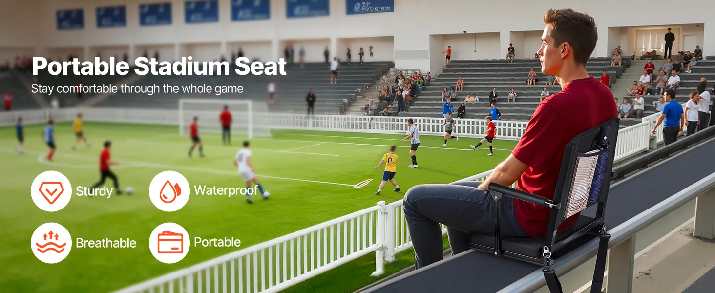 Machen Sie jede Outdoor-Veranstaltung mit unserem klappbaren Stadionsitz zu einem komfortablen Erlebnis. Hochwertige Materialien und zuverlässiges Design vereinen Eleganz und Funktionalität – ideal für trainierende Schüler, Eltern beim Training sowie Zuschauer und ältere Nutzer.