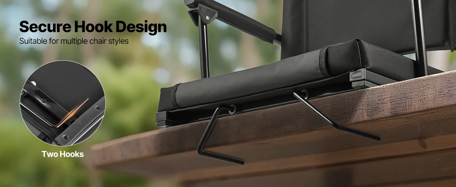Dieser Stadionsitz verfügt über zwei versteckte Haken unter dem Stuhl, die bei Bedarf herausgezogen werden können, um ihn auf Tribünen, Bänken oder ebenen Flächen stabil zu halten. Genießen Sie bequemes Sitzen und zuverlässigen Halt bei Sportveranstaltungen, Konzerten oder Outdoor-Aktivitäten, wo immer Sie auch sind.