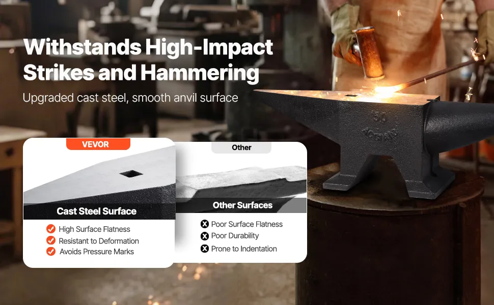 • Großer Arbeitsbereich: Diese 105 lbs (48,1 kg) schwere Ambossschmiede aus Metall verfügt über eine komfortable und breite Arbeitsfläche. Die breite Arbeitsplatte und die flache Oberfläche sorgen für ein angenehmes Benutzererlebnis. Sie hält auch langem Schlagen stand
