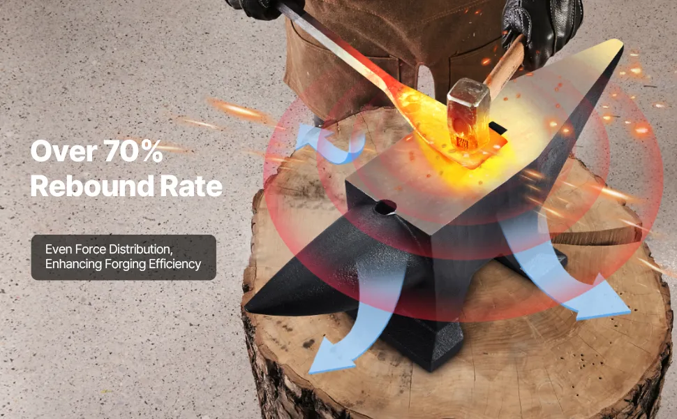 Der Amboss aus Gusseisen von VEVOR bietet eine hervorragende Rückprallqualität. Das ist wichtig für eine effiziente Metallbearbeitung. Ein hoher Rückprall bedeutet weniger Kraftaufwand und es wird mehr Energie auf das Werkzeug übertragen. Diese Effizienz ermöglicht schnellere, präzisere Schläge. Ideal für lange Projekte, bei denen wiederholt gehämmert werden muss. Sie können länger mit weniger Ermüdung und mehr Kontrolle arbeiten. Diese Funktion ist besonders vorteilhaft für gleichbleibende Ergebnisse. Ein hoher Rückprall verringert die körperliche Belastung bei der Metallbearbeitung. Dieser effiziente und effektive Amboss unterstützt Ihre Produktivität in der Werkstatt.