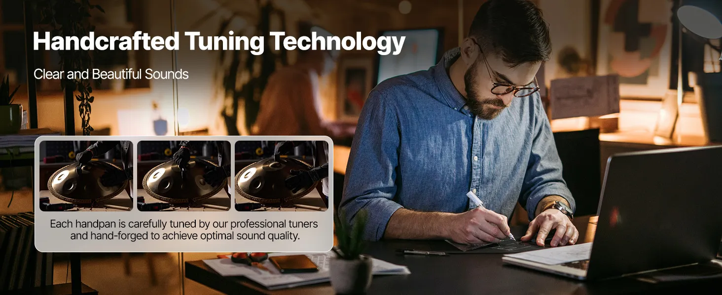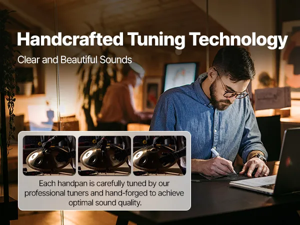 Präzise Tonhöhe: Unsere Handpan wird von professionellen Stimmern mit Präzisionsgeräten wiederholt gestimmt, um exakte Töne und einen reinen Klang zu gewährleisten. Sie zeichnet sich durch hohe Stabilität aus und behält auch nach langjährigem Gebrauch ihre berührenden Melodien bei.