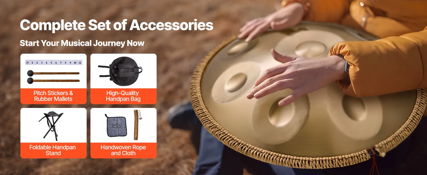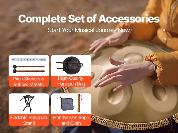 Einfach zu spielen: Keine Musiktheorie oder Spielerfahrung erforderlich. Durch Klopfen mit Schlägeln oder Händen erzeugt diese Handpan einen durchdringenden Klang und einen einzigartigen, ätherischen Ton. Ideal für Kinder und Anfänger, um schnell Freude an der Musik zu finden.