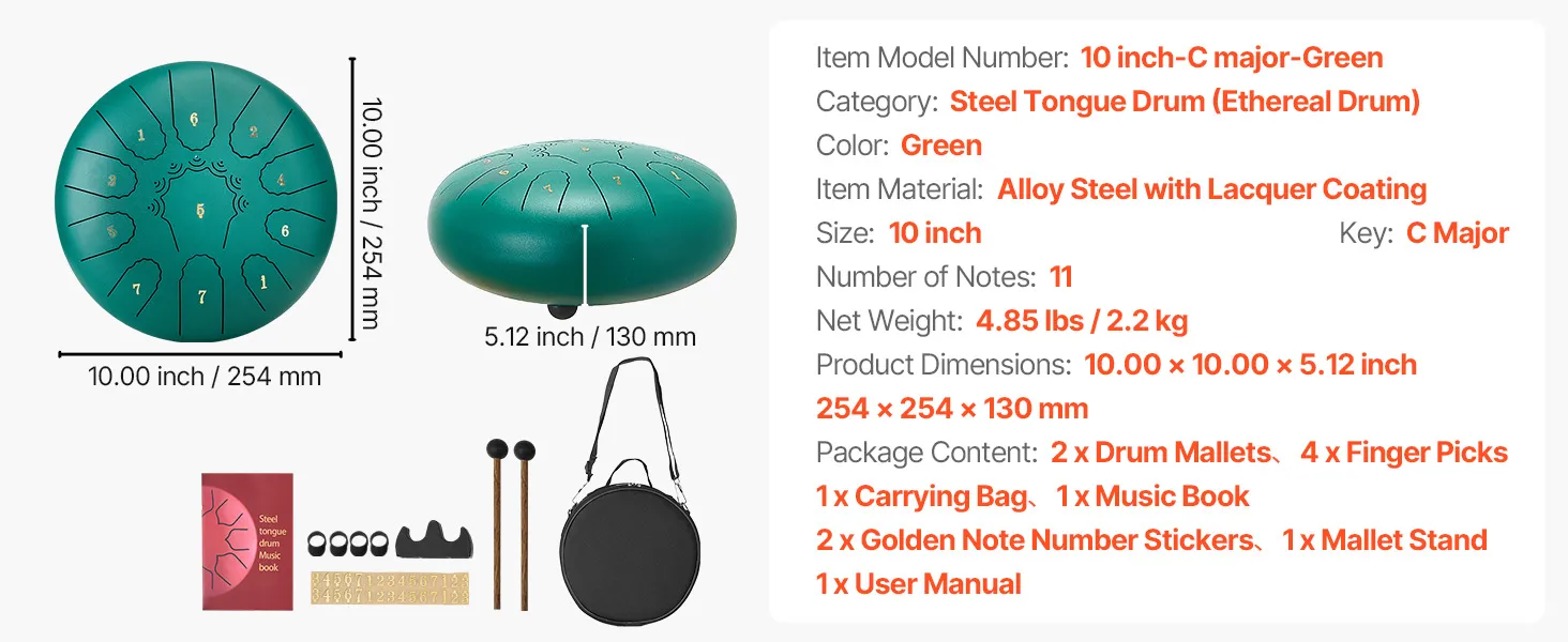 Hochwertiges Material & Verarbeitung: Diese aus einer hochwertigen Stahllegierung gefertigte Zungentrommel erzeugt einen stabilen, klaren und reinen Klang mit exzellenter Resonanz. Die hochwertige Lackierung ist korrosionsbeständig, kratzfest und farbecht.