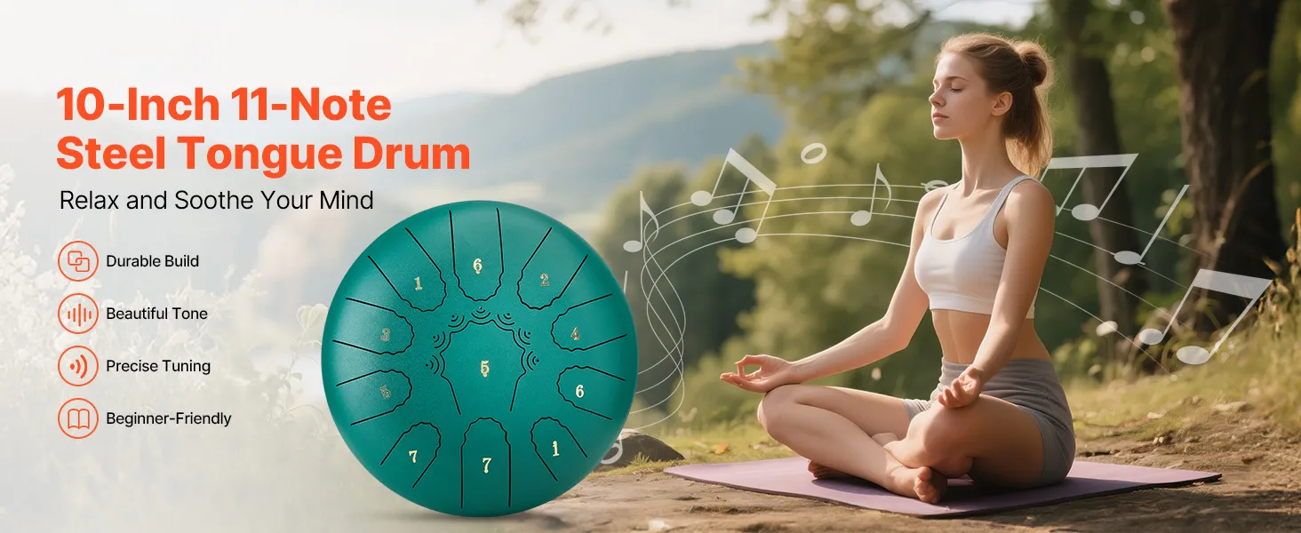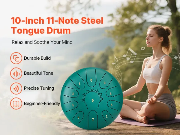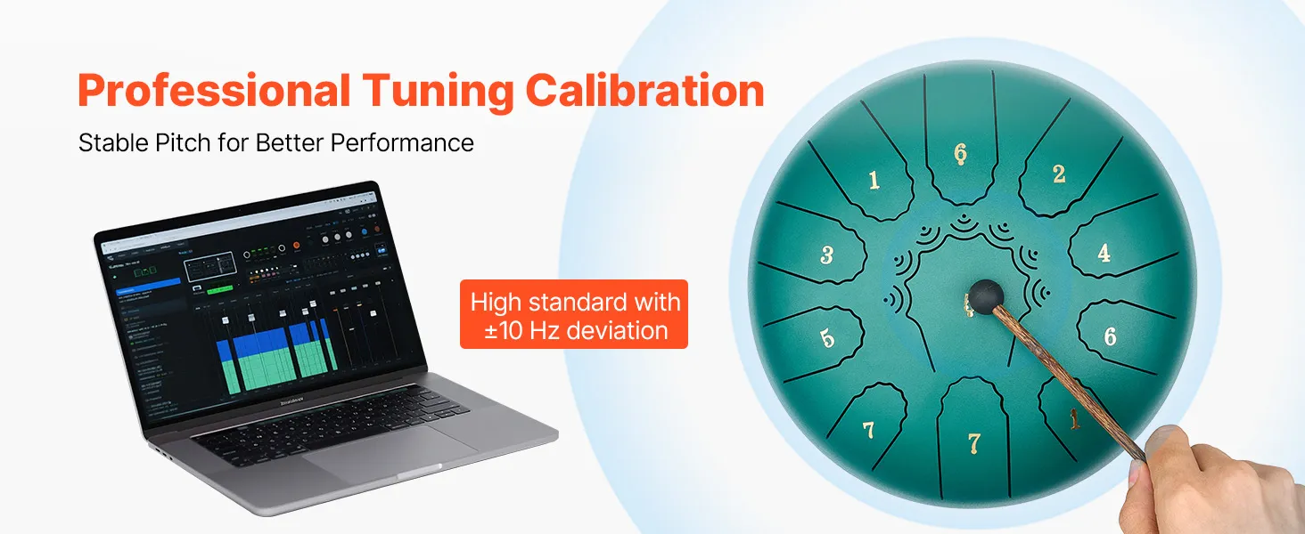 Unsere Stahltrommel besteht aus einer robusten und langlebigen Vollstahllegierung. Dank ihrer feinfühligen Resonanz wirkt ihr ätherischer und angenehmer metallischer Klang beruhigend auf Körper und Geist, entspannt die Nerven, lindert Stress und steigert das emotionale Wohlbefinden.