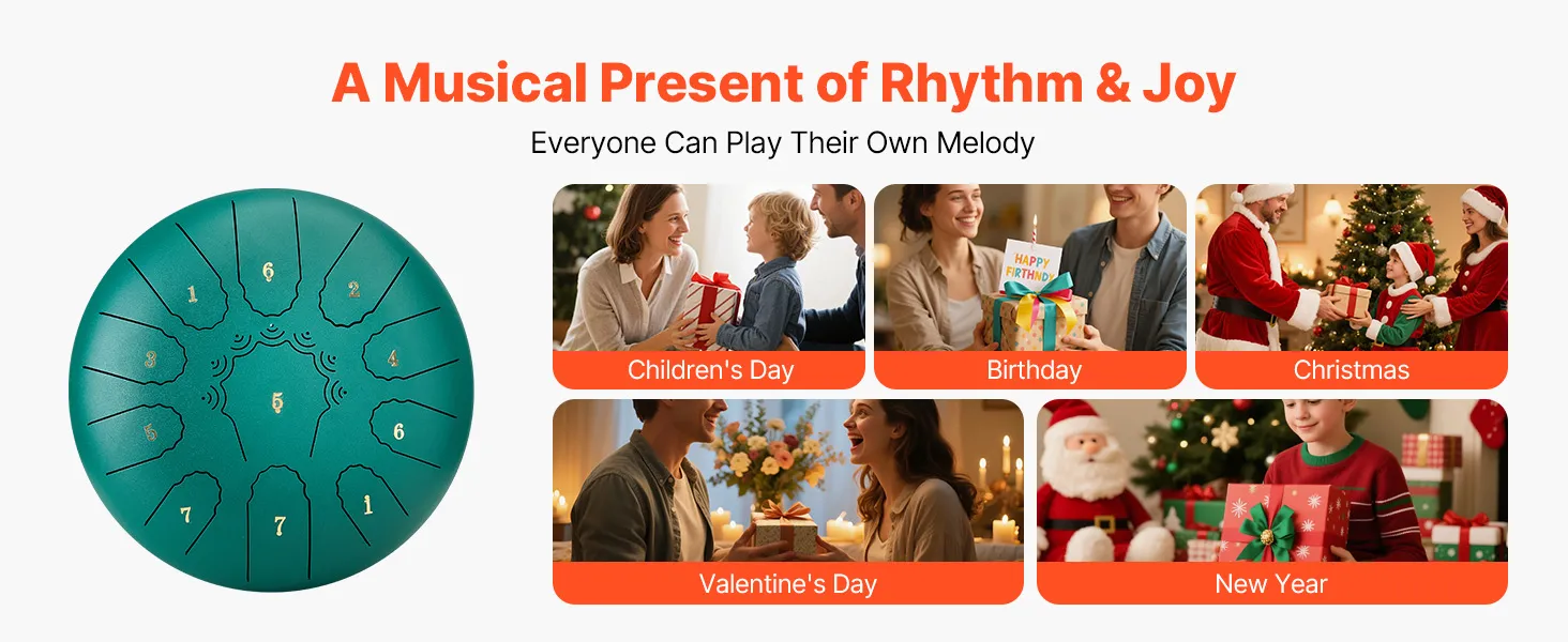 Unsere Steel Drum erzeugt einen ätherischen und reinen Klang, der die Seele beruhigt. Sie ist eine liebevolle Geschenkidee für Freunde, die Stress abbauen und zur Ruhe kommen möchten. Bei Kindern weckt sie die Neugier, fördert das musikalische Empfinden und unterstützt die musikalische Früherziehung. Ein ideales Geschenk für Geburtstage, Feste und Jubiläen.