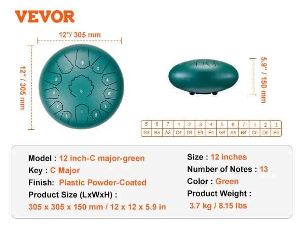 VEVOR 305 mm Steel Tongue Drum, 13 Töne, C-Dur