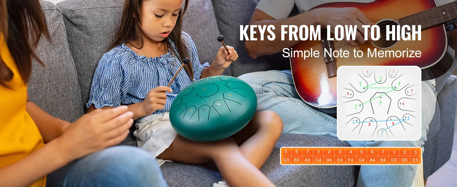 Die Stahltrommel mit ihrem breiten Tonspektrum bereichert die Ausdruckskraft der Musik. Darüber hinaus macht ihr benutzerfreundliches Design das Lernen und Spielen außergewöhnlich einfach und sorgt für endlosen Musikgenuss.