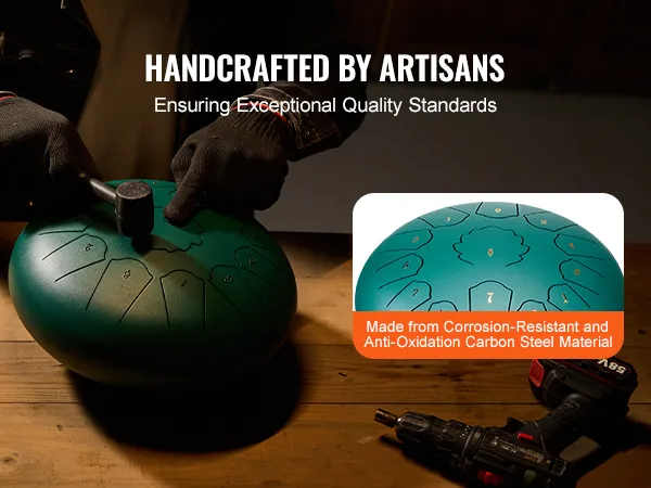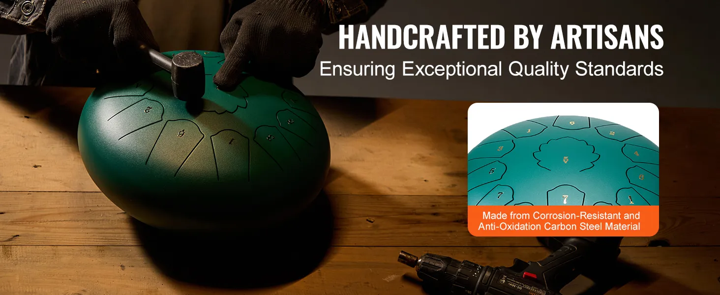 Jede Steel Tongue Drum wird sorgfältig von Hand gestimmt, um höchste Tonhöhenpräzision zu gewährleisten und dem Spieler einen hervorragenden musikalischen Ausdruck und reichhaltigen Hörgenuss zu bieten.