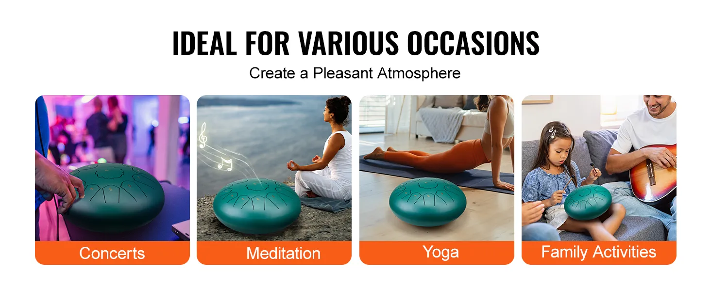 Als Geschenk: Diese Zungentrommel kann die Leidenschaft anderer für Musik entfachen und ist ein ideales Geschenk für Freunde und Familie zu den Feiertagen. Unsere Stahltrommel eignet sich für verschiedene Anlässe und ermöglicht es jedem, gemeinsam die heilende Wirkung der Musik zu erleben.