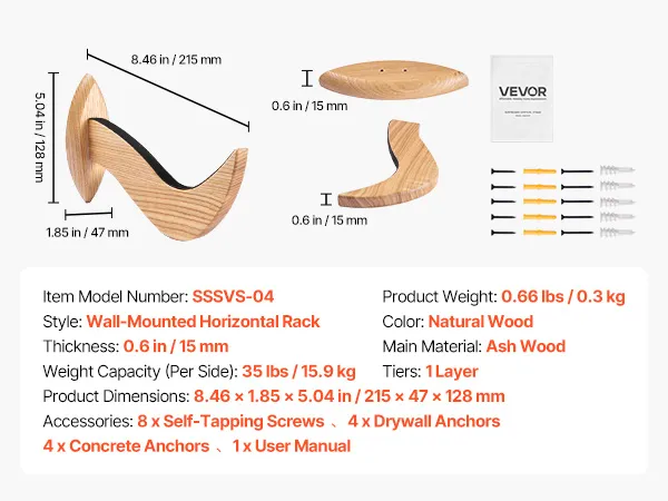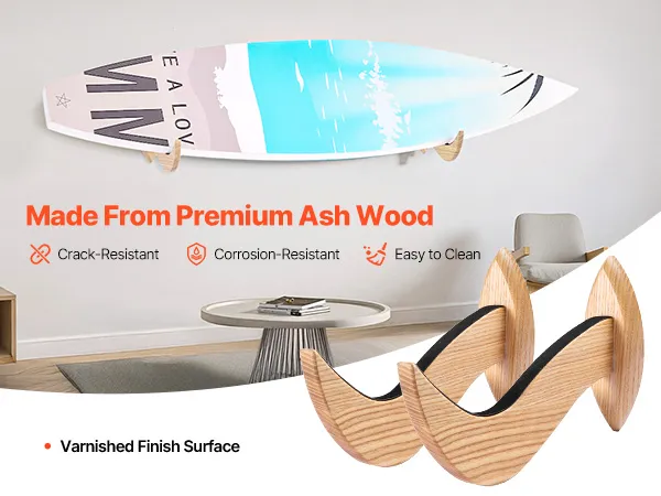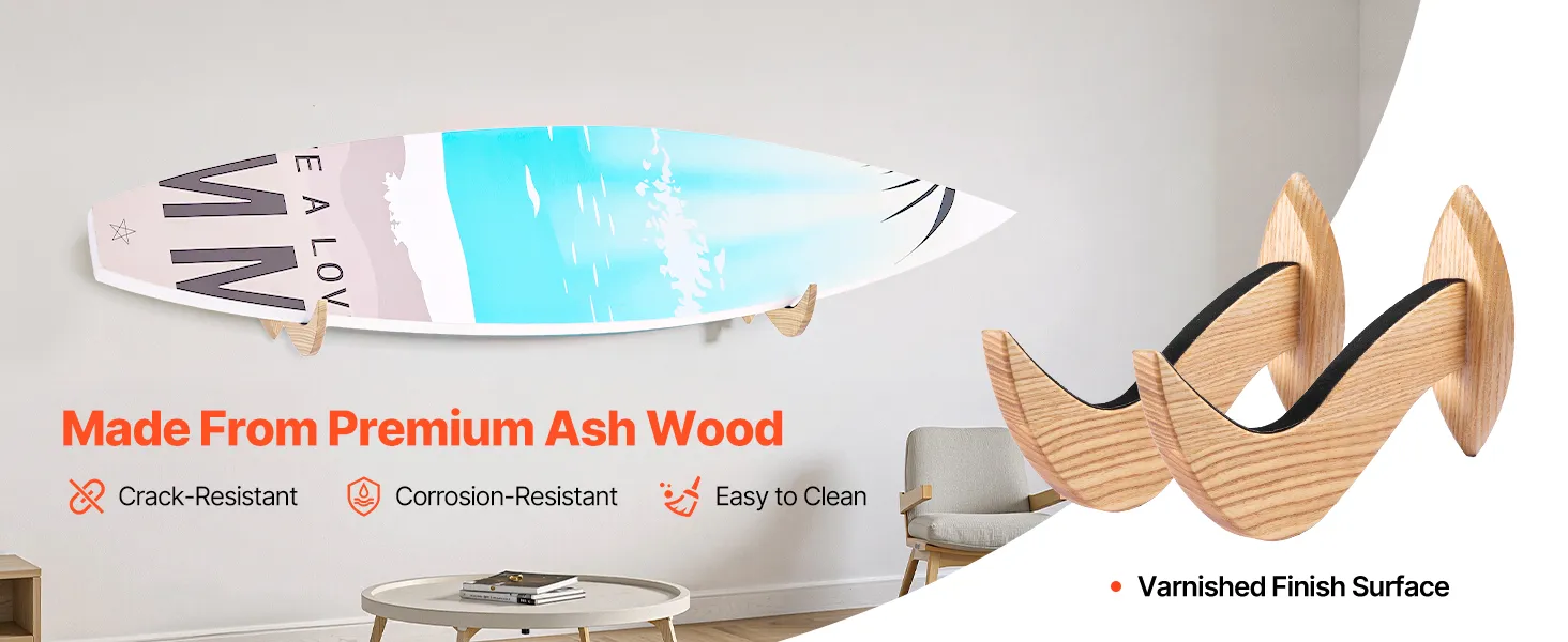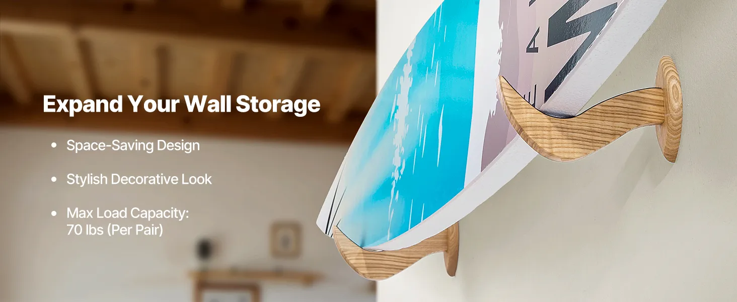 Diese Surfbrett-Wandhalterung ist ideal für Surfer, Skifahrer und Wakeboarder. Mit einer Tragkraft von 31,7 kg (für ein Paar) hält es verschiedene Boards sicher. Ausgestattet mit kratzfesten Pads schützt es Ihre Ausrüstung. Hergestellt aus Eschenholz, ist es robust, pflegeleicht und stilvoll – ideal für Ihr Schlafzimmer, Wohnzimmer, Ihre Garage oder die Präsentation in Ihrem Surfshop.