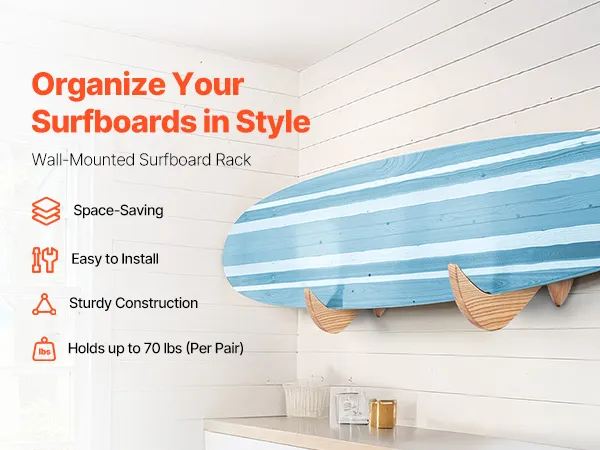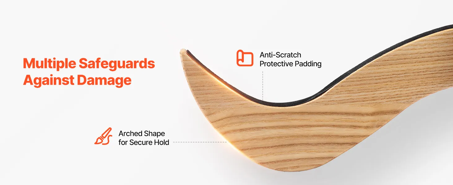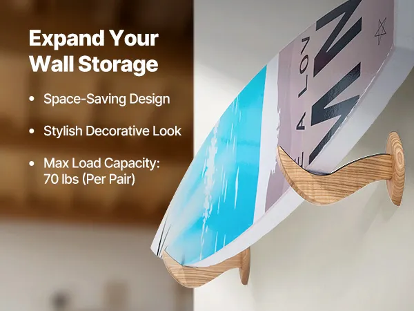 Stabile Tragkraft: Jeder Surfbrettständer kann bis zu 35 lbs (15,9 kg) tragen, und als Paar trägt er bis zu 70 lbs (31,7 kg), sodass Sie Ihre Bretter sicher lagern können. Die Kontaktpunkte sind mit kratzfesten Pads ausgestattet, um Beschädigungen beim Bewegen Ihrer Bretter zu vermeiden