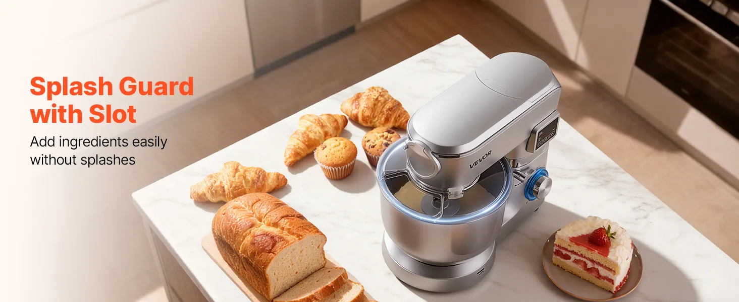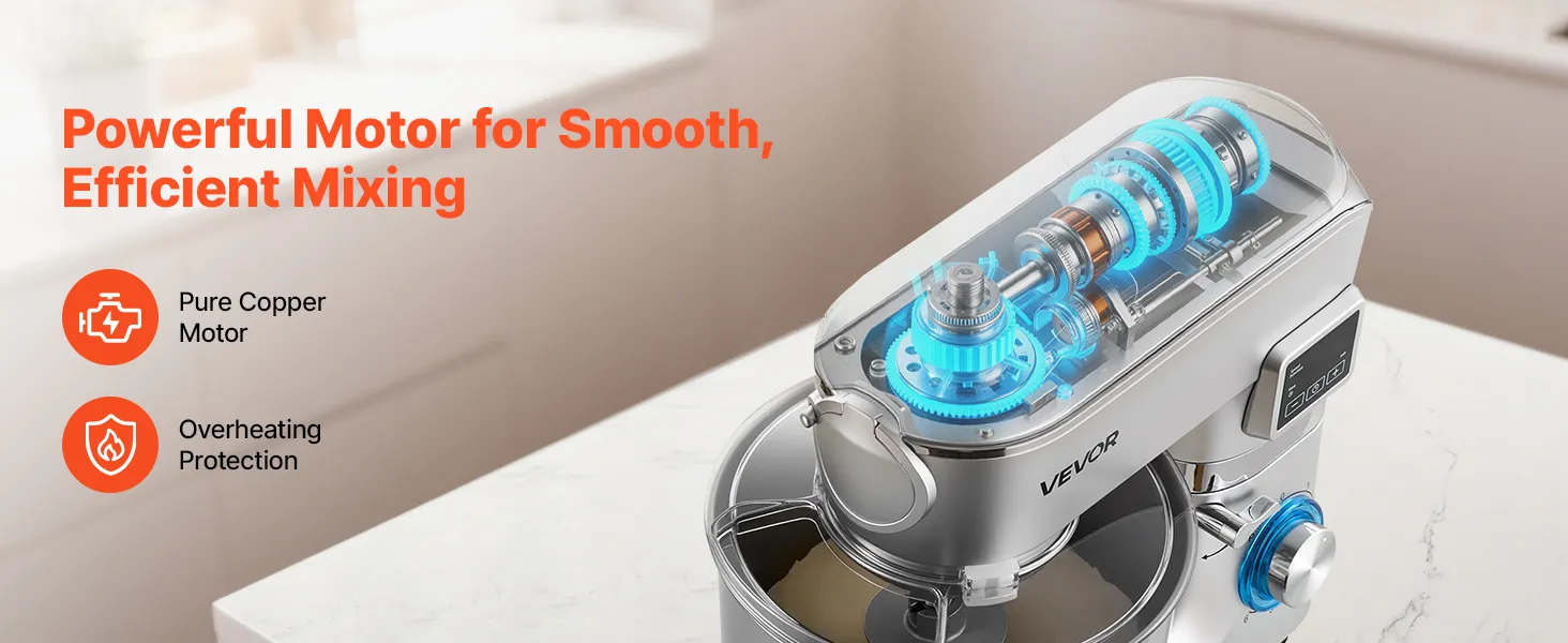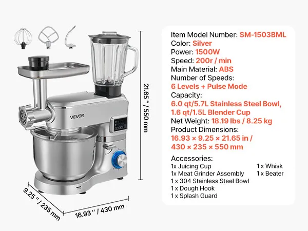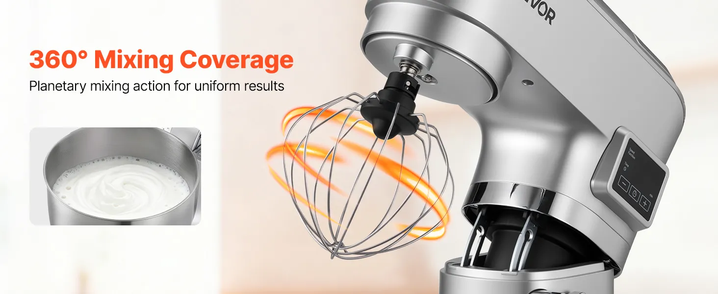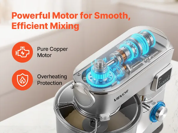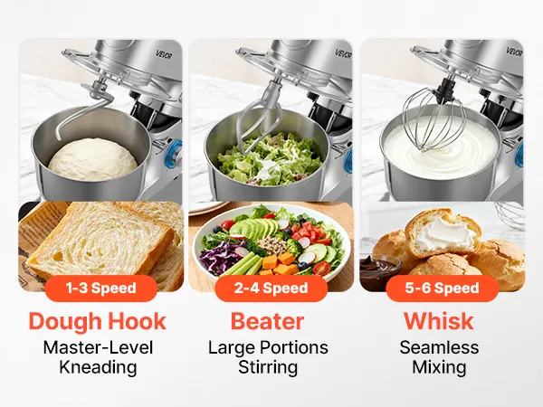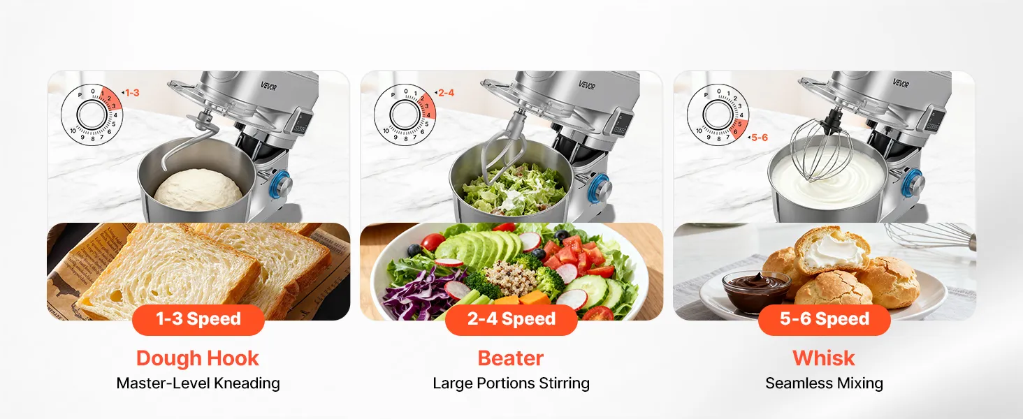 6-Gang-Steuerung & Pulsfunktion: Unser elektrischer Küchenmixer verfügt über einen leistungsstarken 1500-Watt-Motor für schnelles, gleichmäßiges Mixen. 6 einstellbare Geschwindigkeiten und eine Pulsfunktion sorgen für optimale Ergebnisse: 1–3 für Teig, 2–4 für Füllungen, 5–6 für Schlagsahne. Bitte stoppen Sie die Maschine, bevor Sie die Geschwindigkeit ändern