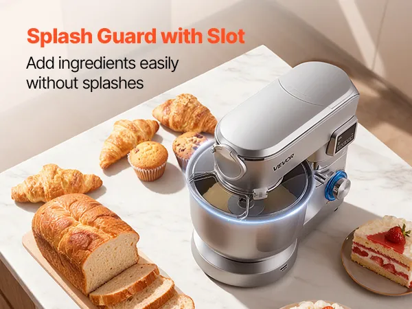Große Schüssel & 3 Aufsätze: Schüssel mit großem Fassungsvermögen: Unsere Küchenmaschine verfügt über eine geräumige Edelstahlschüssel mit 6 Qt (5,7 L), sodass Sie große Mengen Teig mischen, Schokoladenkekse backen, frisches Brot oder sogar Kartoffelpüree für Ihre nächste große Mahlzeit zubereiten können