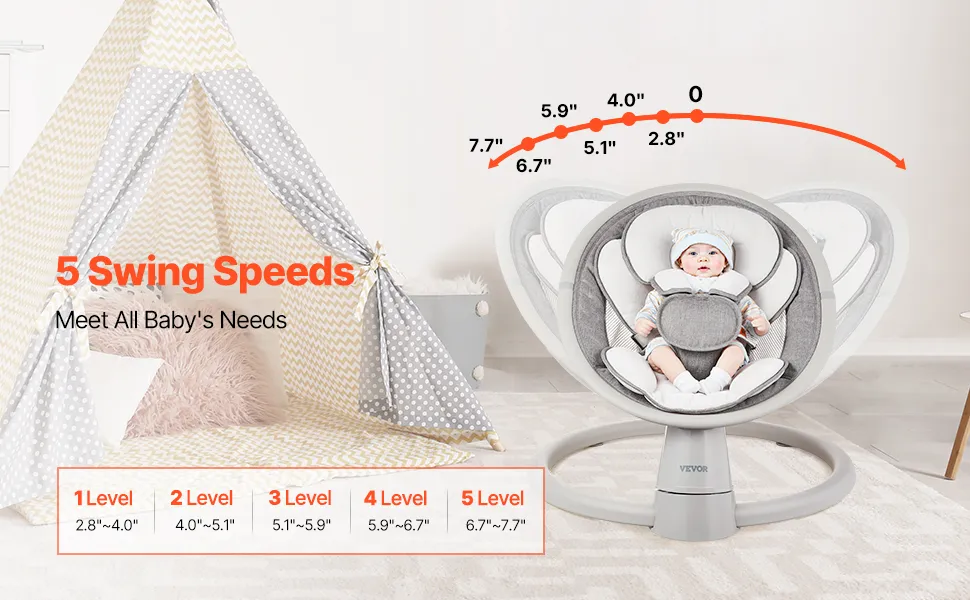 Mit 5 natürlichen Schaukelgeschwindigkeiten bietet diese Neugeborenenschaukel allmähliche Unterschiede zwischen den einzelnen Einstellungen. Perfekt für Babys von 0–9 Monaten oder bis zu 9 kg, sorgt dafür, dass Ihr Baby in dieser Babywippe eine entspannte, bequeme Erfahrung genießt.