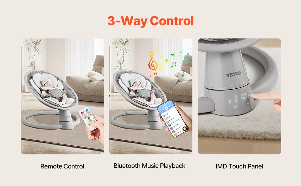 Einfache Steuerung: Passen Sie Musik, Schaukelgeschwindigkeit und Timer ganz einfach über das Smart-Touchpanel oder die Fernbedienung an. Wählen Sie aus 10 voreingestellten Liedern oder verbinden Sie Ihr Telefon über Bluetooth, um beruhigende Musik für Ihr Baby abzuspielen. Perfekt für vielbeschäftigte Eltern, denn es gibt Ihnen die Hände frei und ermöglicht Ihnen mehr persönlichen Freiraum
