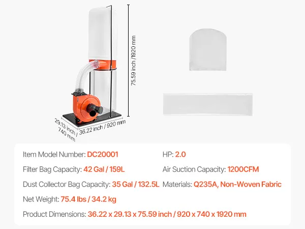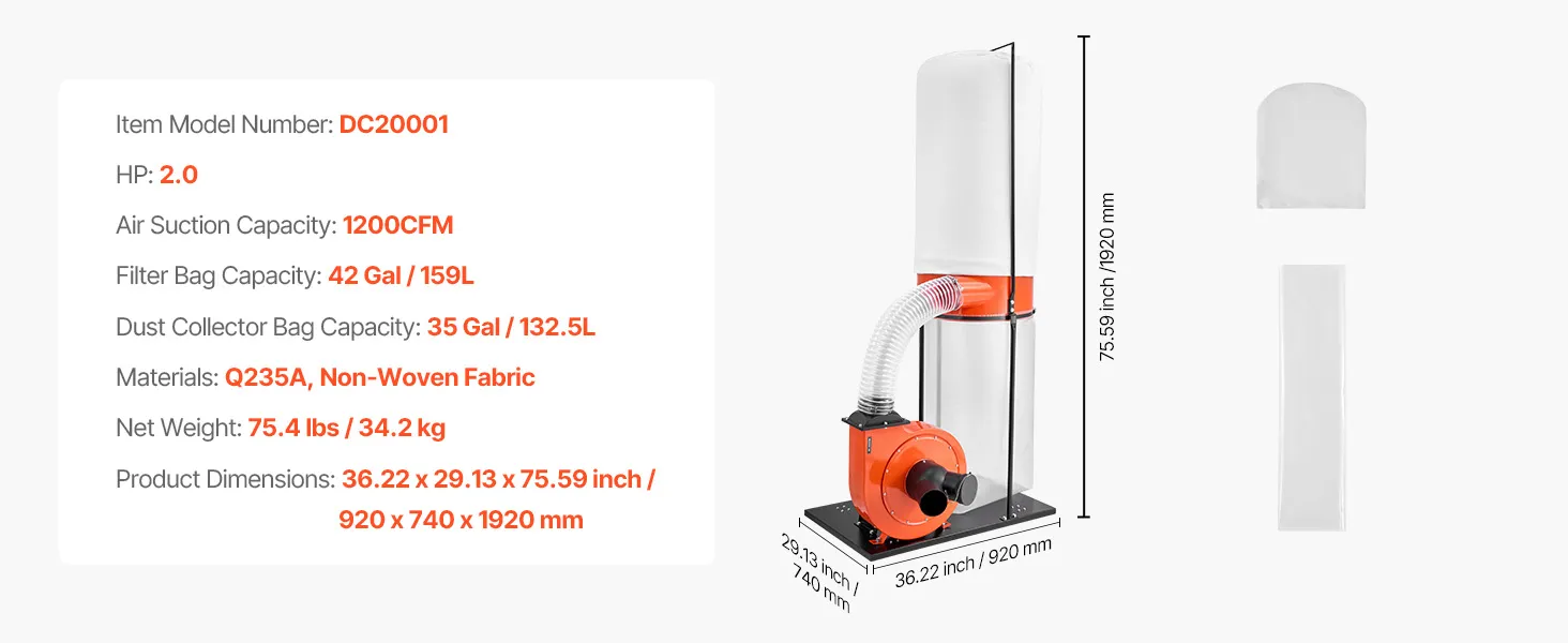 Unser 159-Liter-Staubsauger verfügt über eine starke Saugleistung von 2038,8m³/h (1200 CFM), einen 2,0-PS-Hochleistungsmotor und eine 2,5-Mikron-Filterung. Das kompakte Wandmontagedesign mit Bodenrollen und großem Auffangbeutel vereinfacht die Staubbeseitigung und sorgt für Ordnung und Effizienz in Holzbearbeitungsbereichen.