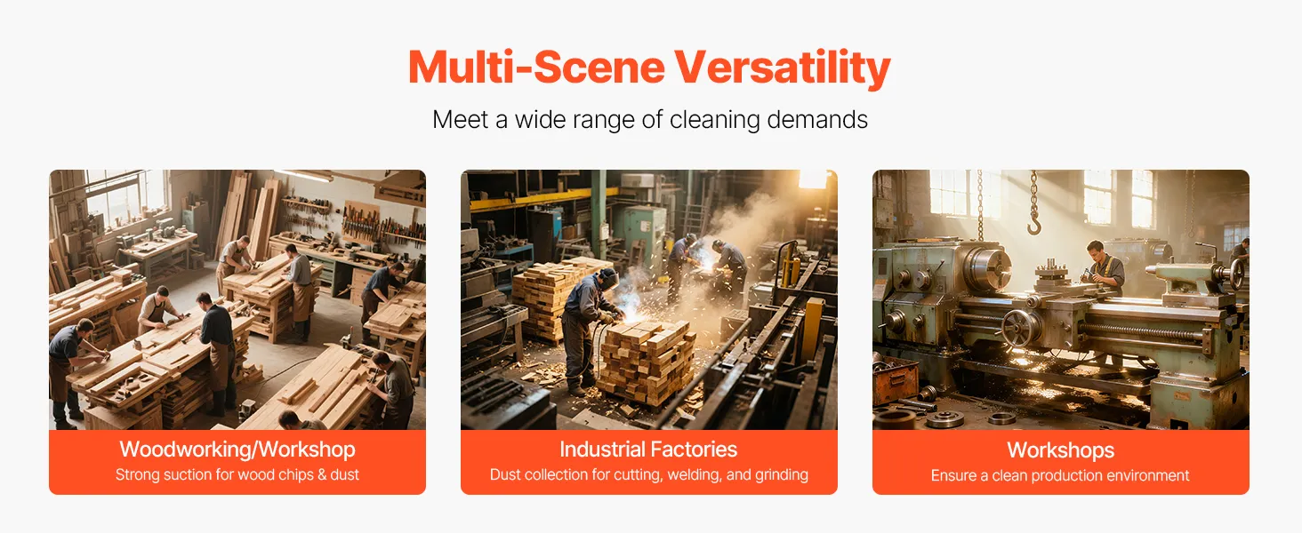 Leistungsstarker Motor: Ausgestattet mit einem bürstenlosen 2,0-PS-Motor sorgt dieser Wirbelkegel-Staubsammler für einen robusten und gleichmäßigen Luftstrom. Sein überlastungsresistentes Design sorgt für Langlebigkeit, während der geräuscharme Betrieb von ≤90 dB einen längeren, ungestörten Einsatz ermöglicht und so ein effizientes und kontinuierliches Staubmanagement unterstützt.