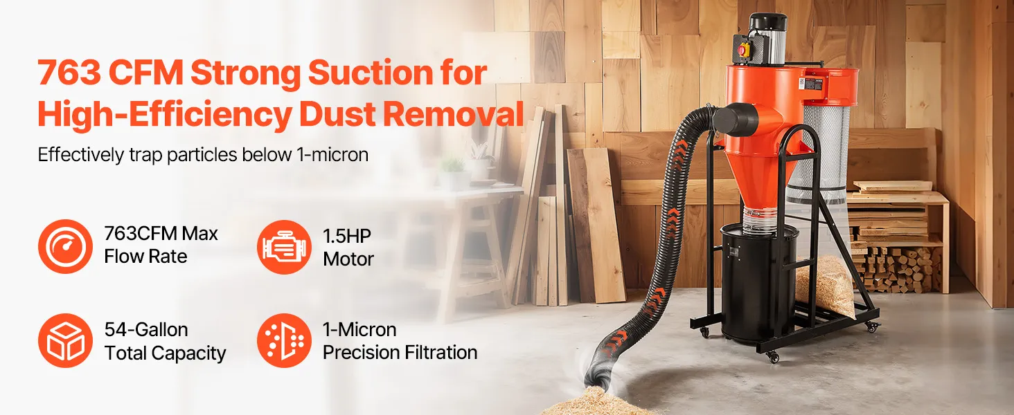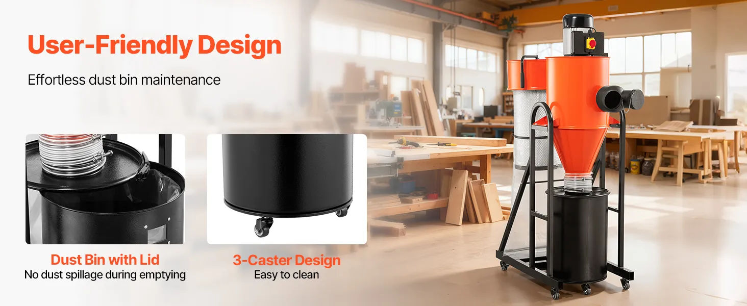 Hochleistungsmotor: Der VEVOR Zyklon-Staubabscheider verfügt über einen bürstenlosen 1,5-PS-Motor, der eine gleichmäßige, leistungsstarke Saugleistung liefert. Der Geräuschpegel wird auf ≤ 90 dB reduziert, um einen komfortableren Betrieb zu gewährleisten. Die überlastungsresistente Konstruktion gewährleistet eine lang anhaltende, stabile Leistungsabgabe für kontinuierliche Holzbearbeitungsarbeiten.