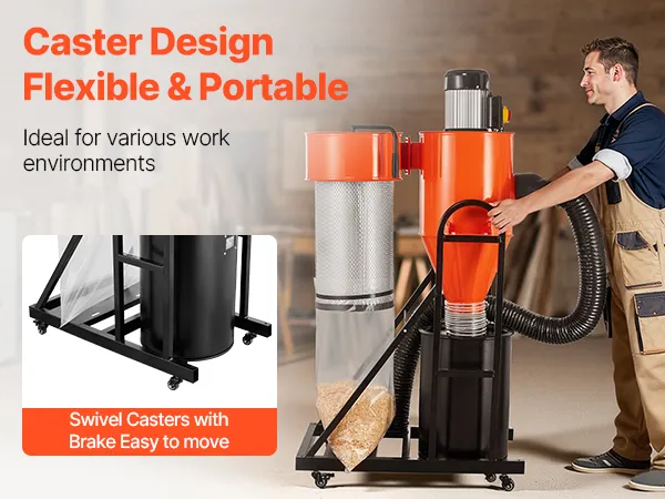Dank der schwenkbaren Lenkrollen lässt sich dieser Staubabscheider problemlos in verschiedenen Arbeitsbereichen bewegen. Er lässt sich leicht umstellen oder anpassen und bietet so eine flexible und effiziente Staubbehandlung sowie mehr Komfort und Produktivität in Ihrer Werkstatt oder Fabrik.