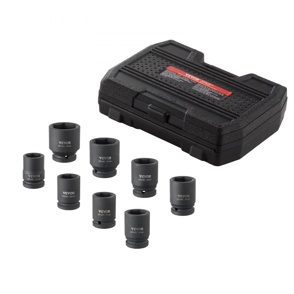 19.05 mm Drive Axle Nut Socket Set: This metric 8-piece drive axle nut impact socket set includes sizes 24 mm, 26 mm, 27 mm, 29 mm, 30 mm, 32 mm, 36 mm, and 38 mm. It is perfect for efficiently tightening axle nuts and bolts.