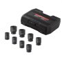 Impact-resistant and corrosion-resistant: Made from heat-treated CR-MO steel, this spindle nut socket set withstands the high torque of impact tools. Phosphating provides additional corrosion resistance, and each socket is clearly marked for easy identification.