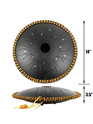 Die Zungenstimme ist sehr ätherisch und kann reine, beruhigende Töne aussenden. Die Steeldrum 14 Note wird in der Musikerziehung, spirituellen Heilung und Yoga-Meditation verwendet. Darüber hinaus ist die 14-Noten-Handtrommel sehr hilfreich, um die Emotionen der Menschen zu beruhigen.